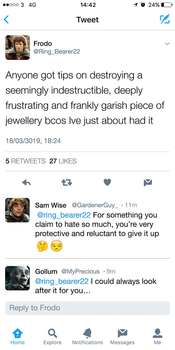 Frodo’s frustration with his journey to destroy the ring
