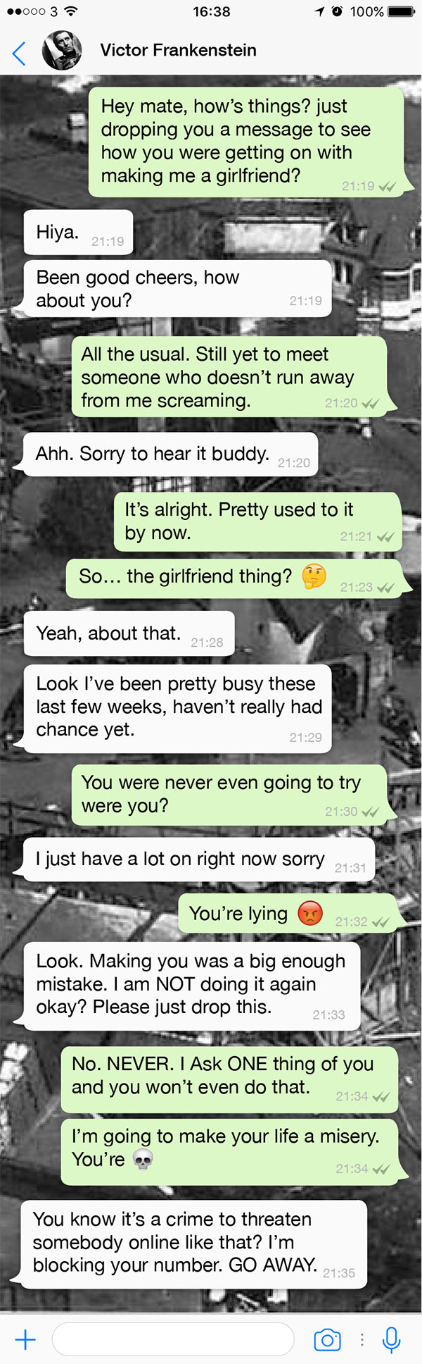 Frankenstein refuses to give the Monster a partner