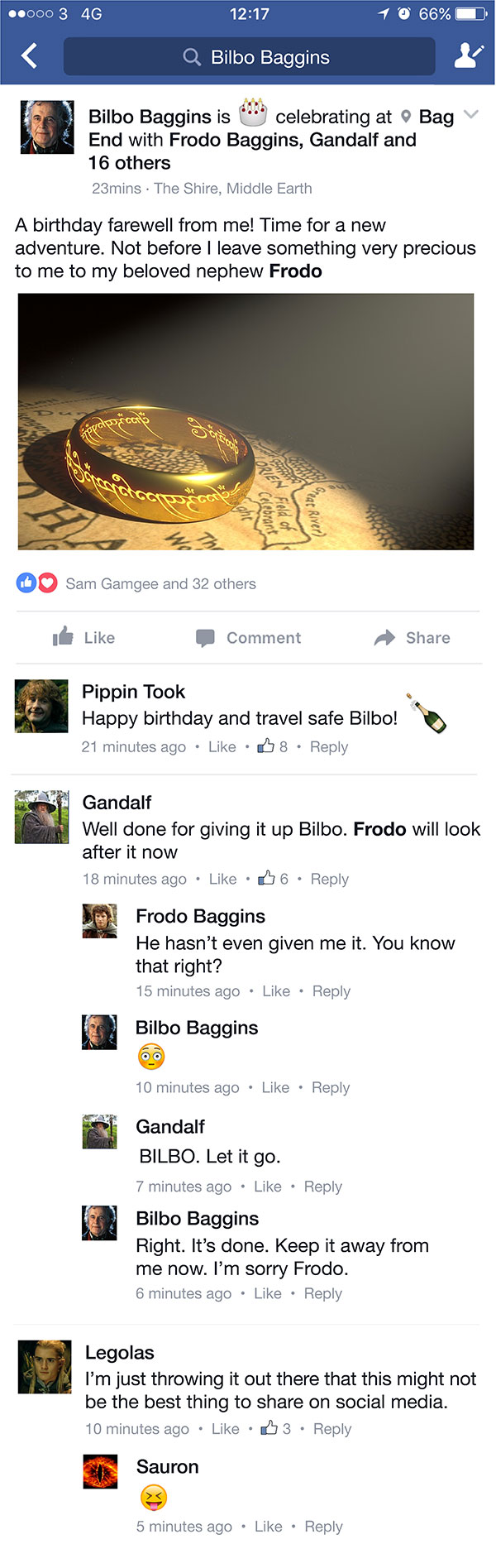 Bilbo gives the ring to Frodo